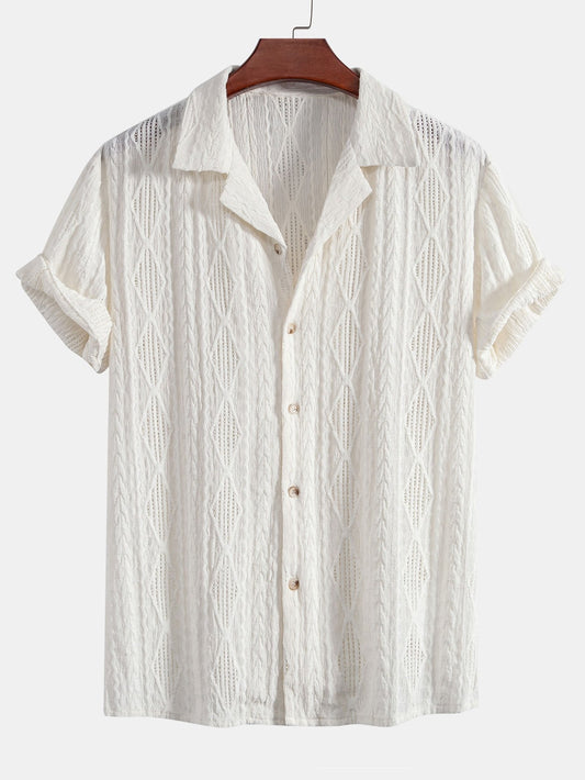 Geometric Pattern Jacquard Cuban Shirt