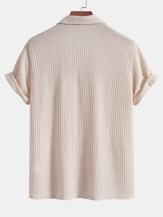 Short Sleeve Textured Cuban Shirt with Geometric Design