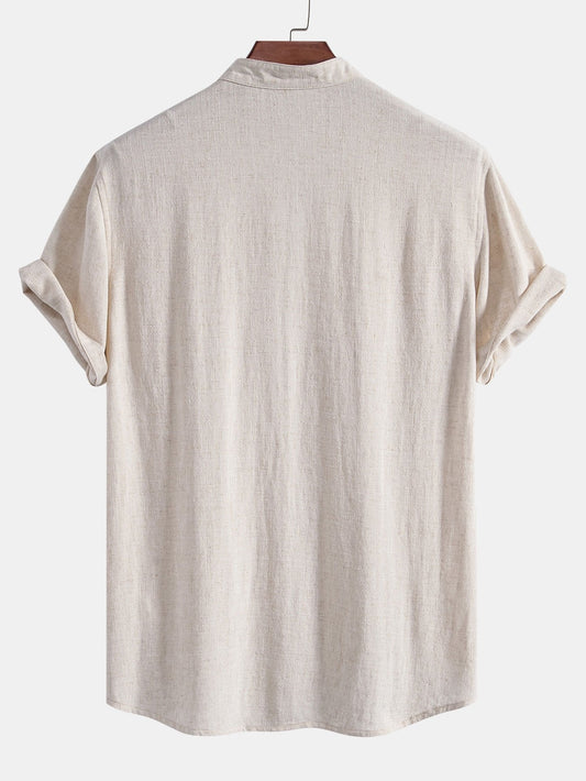 Short Sleeve Waffle Knit Cuban Shirt with Straight Leg Linen Trousers