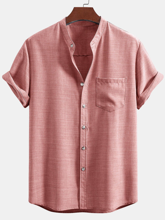 Short Sleeve Stand Collar Shirt with Straight Leg Linen Trousers