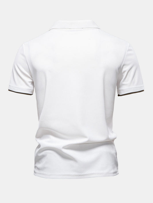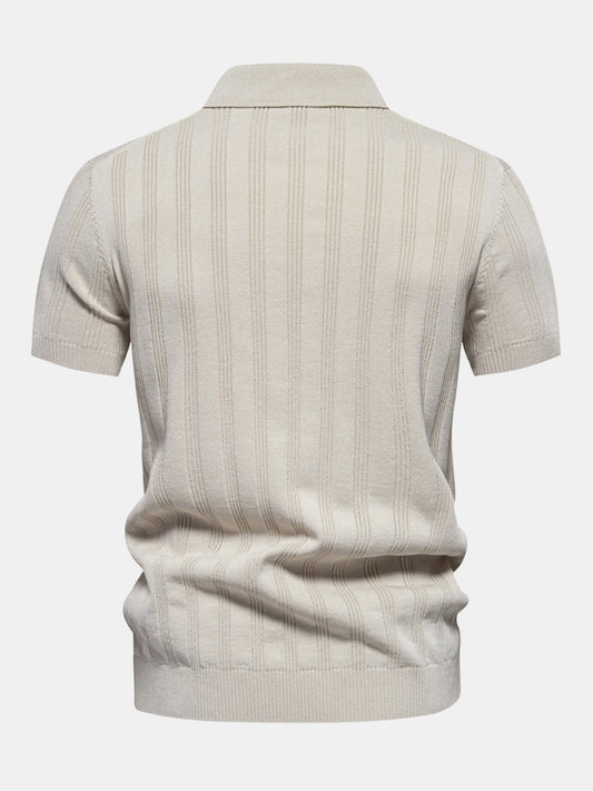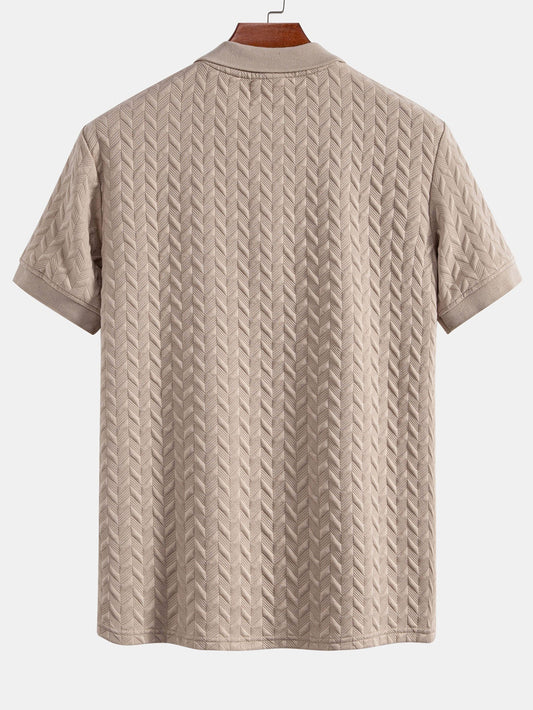 Textured Jacquard Knit Zip-Up Polo with Contrast Details