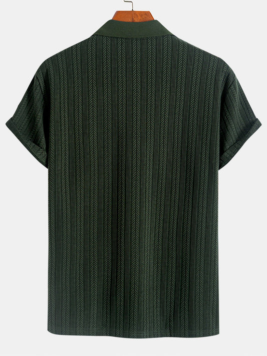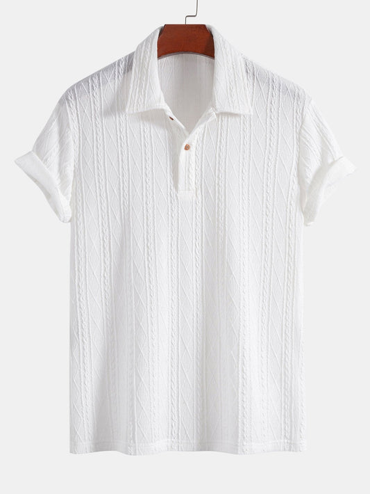 V-Neck Polo Shirt with Wave Jacquard Knit