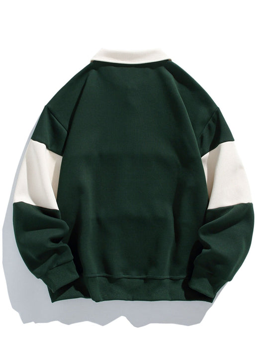 Color Block Patchwork Polo Sweatshirt in Relaxed Fit