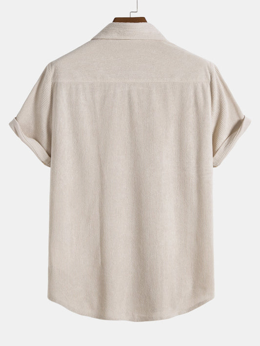 Textured V-Neck Shirt & Straight Leg Pants with Wrinkle Finish