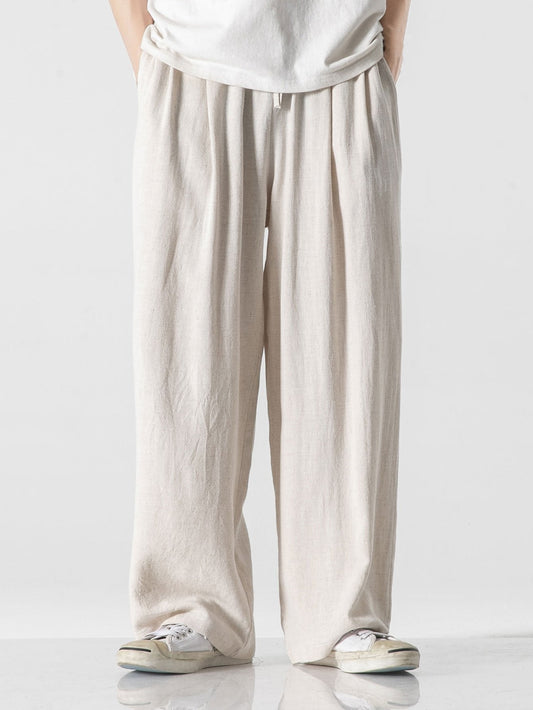 Relaxed Fit Wide Leg Pants in Linen-Cotton Blend