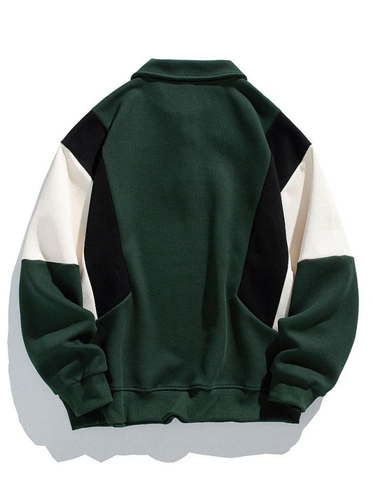 Relaxed Fit Waffle Knit Wide Striped Polo Sweatshirt